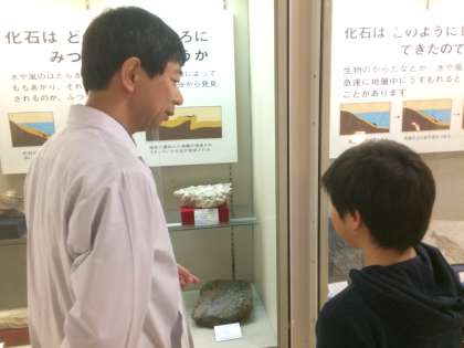 化石の説明をしてもらったり重さの秘密にせまったりしています!
