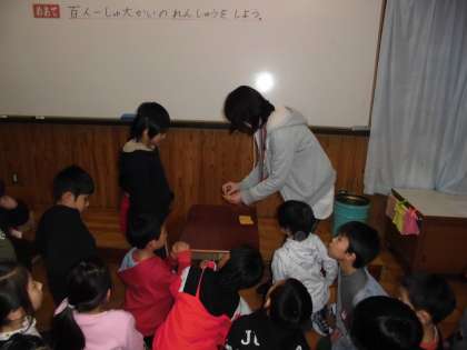 校内百人一首大会の進め方の練習をしていました。