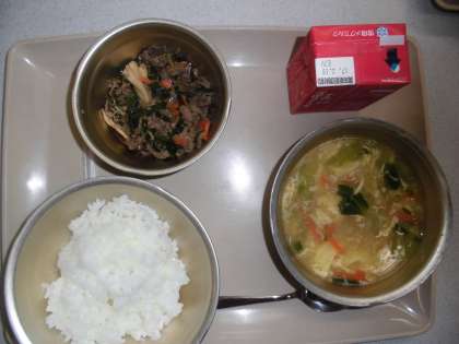 今日の給食の献立は,「ご飯」「中華コーンスープ」「牛乳」「プルコギ」です。