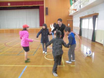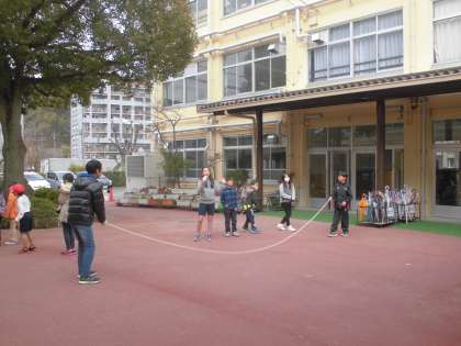 今日の中間休みはレインボー遊び(全校たてわり遊び)が行われました。みんな寒さも忘れて,遊びに夢中になっていました。