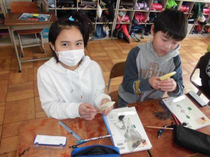 算数の時間に,「円」について学習しています。今日は,「円周」「中心」「直径」などについて学習していました。