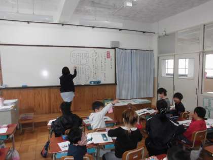 国語の時間に,「たぬきの糸車」を学習しています。今日は,登場人物の行動について学習していました。