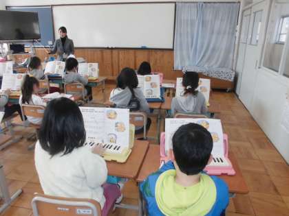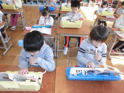 音楽の時間に,曲「小ぎつね」をけんばんハーモニカで演奏していました。