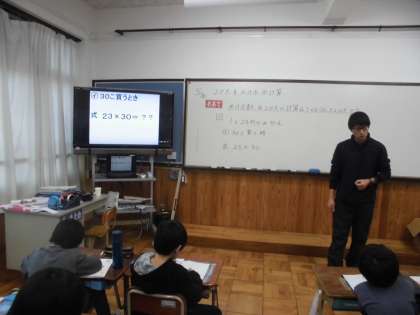 算数の時間に,「かけ算」を学習しています。今日は,2けたのかけ算を学習していました。