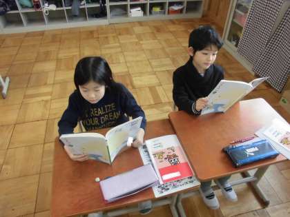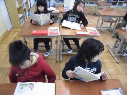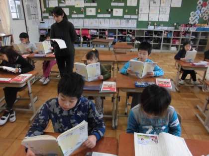 国語の時間に,「スーホの白い馬」を学習しています。今日は,音読練習をしていました。