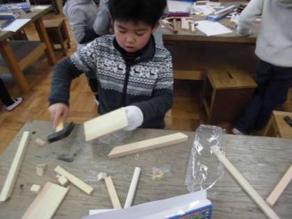 図画工作の時間に,「切ってきって木の世界」を学習しています。