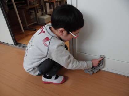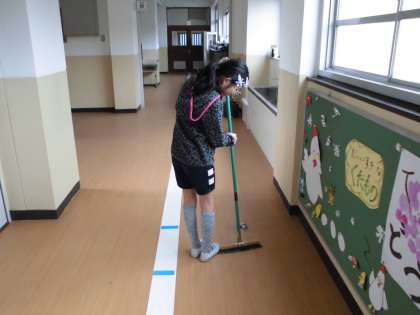 みんなで役割を分担して,廊下をきれいに掃除しています!