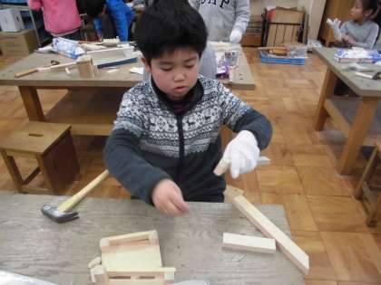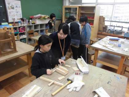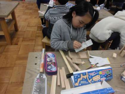 図画工作の時間に,「切ってきって木の世界」を学習しています。作品づくりを一生懸命にしていました。