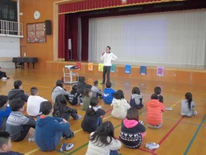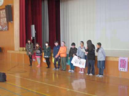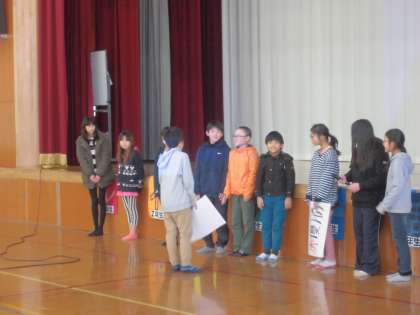 今年度最後のレインボー集会が行われました。先生の1分間スピーチの後,まずは生活向上員会から前に行われたジャンピングフェスティバルの結果発表と表彰がありました。