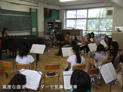 6年生は今,音楽で高度な曲をリコーダー演奏に挑戦しています。とても長く2部3部に分かれ複雑な曲です。でも,とても美しいメロディーで聴いているとうっとりしてきます。