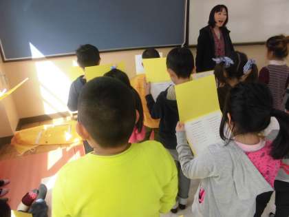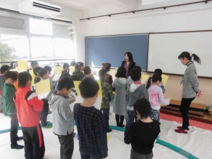 1年生も6年生を送る会に向けて,歌の練習をしていました。