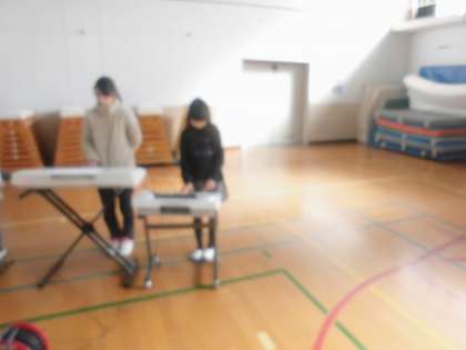 われらエコふぁみりイの発表に向けて,リハーサルを行っています。