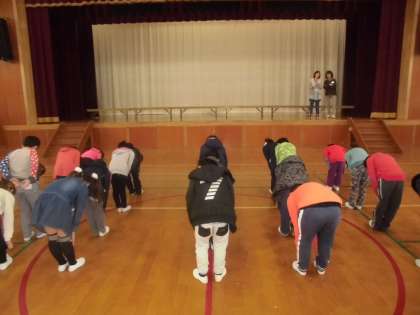 6年生を送る会に向けて,体育館でリハーサルをしていました。