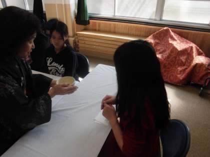 作法を教えていただき,お茶を頂きました。女性会の皆様ありがとうございました。