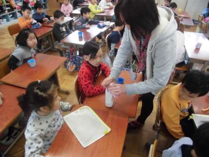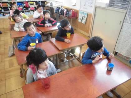フッ化物洗口の日です。上手にフッ化物洗口を行っていました。