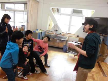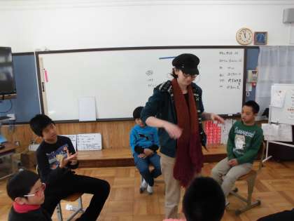 カエミ先生と,英語でのあいさつの練習や,フルーツバスケットをしました。