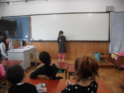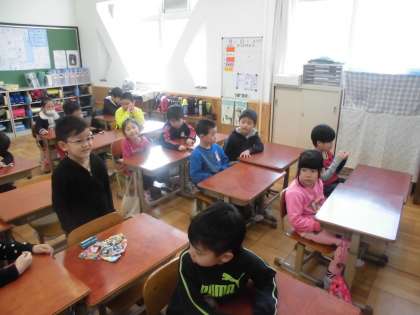 朝の会で,健康観察や1分間スピーチなどをしていました。