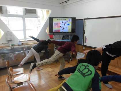 朝の会で,シャキトレをしていました。