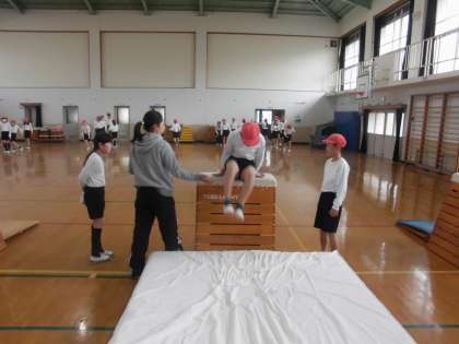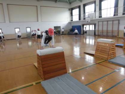 体育の時間に,「とび箱」の練習をしていました。