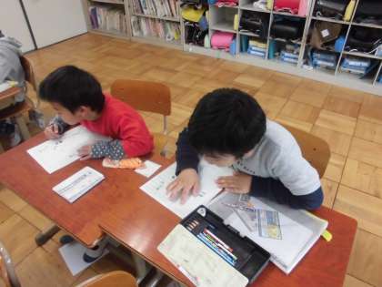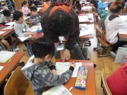 国語の時間に,「ひらがな」「カタカナ」の練習問題をしていました。