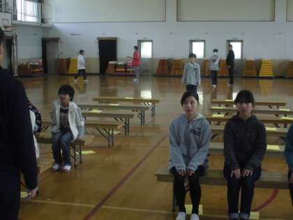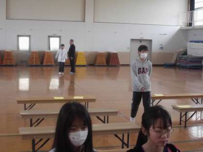 卒業式練習を体育館でしていました。