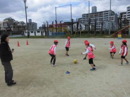 体育の時間に,「ボールけりゲーム」をしていました。