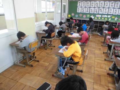 国語の時間に,3年生のまとめの漢字テストをしていました。