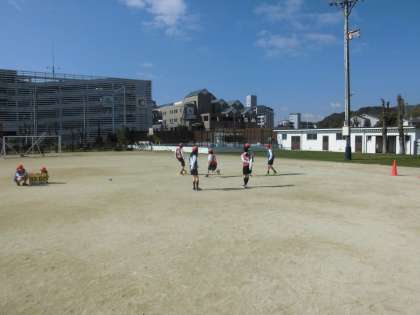 体育の時間に,サッカーをしていました。