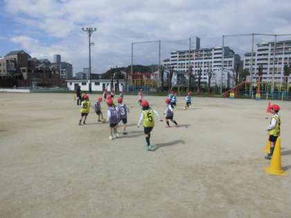 体育の時間に「ボールけりゲーム」をしていました。