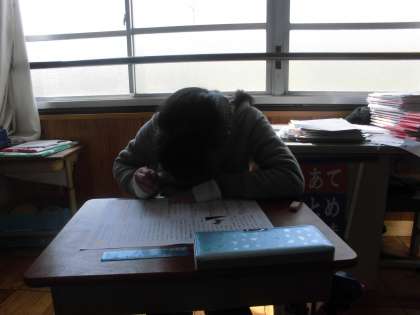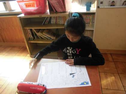 国語の時間に,「モチモチの木」を学習していました。今日は,まとめのテストをしていました。