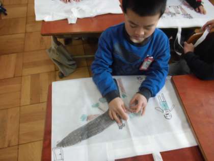 図画工作の時間に,作品バックを仕上げていました。