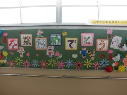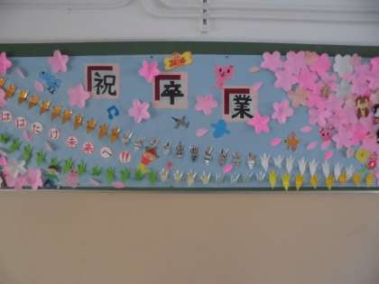 掲示板も卒業を祝して飾りつけられています。