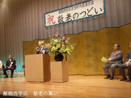 10時から恒例の「敬老の集い」がダイゴロー内の交流会館で開かれました。多くの来賓の方も出席され,盛大に醍醐西学区のお年寄りをお祝いされました。