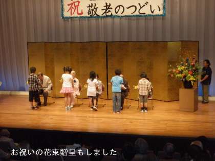 最後にお年寄りの代表に「花束贈呈」の大役まで3年生の子どもたちが引き受けてくれました。ご苦労様でした。