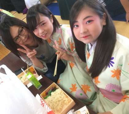 午後からの太閤行列に向けて、お弁当をおいしくいただいています。