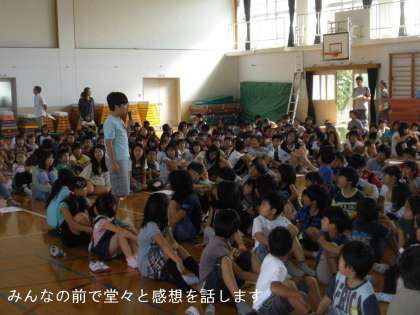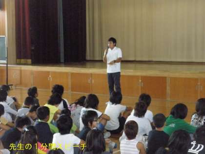縦割り班でそろっての児童集会がありました。いつものように先生からの1分間スピーチがありました。今日は猪元先生から友だちという宝物のお話を聴きました。そのあと6年年生が堂々とみんなの前で感想を話してくれました。
