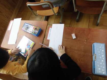 “ぐーぴたぴん”を守って、正しい姿勢でていねいに書けました。これからたくさんの文字を学習していきます。