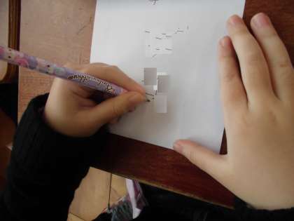 鉛筆の持ち方の学習をしてから、初めて自分の名前を書き写しました。