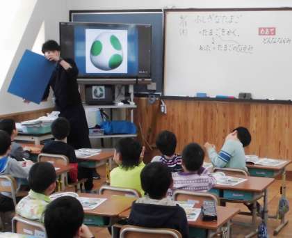 想像力をふくらませ,たまごから何がうまれるかを考えています。どんな色にしようかな?ぼくの,わたしの世界に一つだけのたまごをお楽しみに!