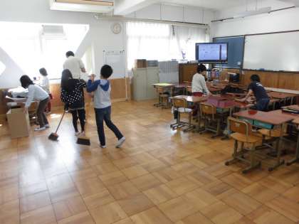 3年生の掃除の時間の様子です。子どもたち自分の役割を理解し、すみずみまできれいに頑張っています。