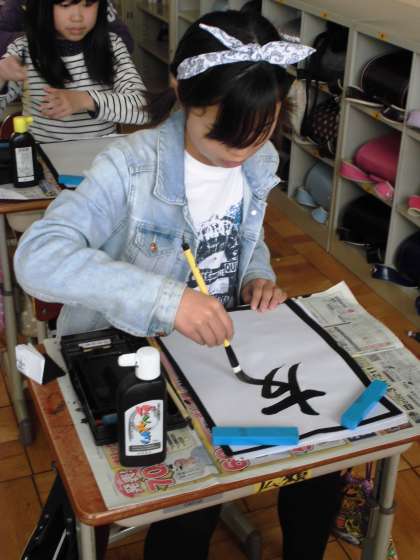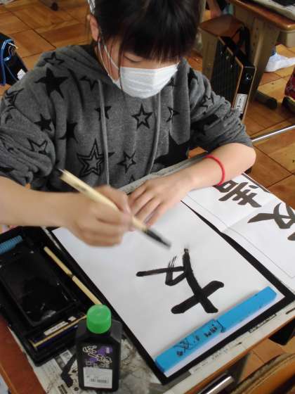 6年生最初の書写で「友情」と書きました。集中して,丁寧に書いていました。