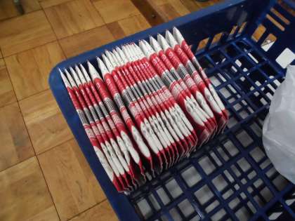 ごはんつぶまで残さずきれいに食べています。牛乳パックもきれいにたためました。