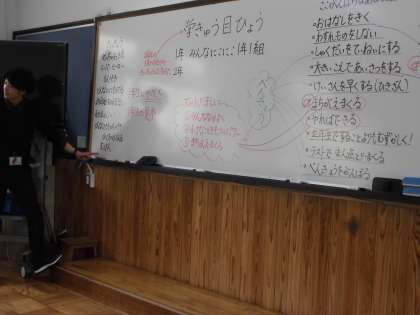 2年生の終わりに成長している姿を思い浮かべて,学級目標をクラスのみんなで考えました。たくさん手も挙がり,発表もし,自分たちの目標を一生懸命考える姿すてきですね。