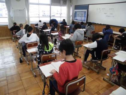 6年生は朝からテストです。土曜学習の成果は出せたかな?難しい問題もありますが,「よし!」と気合を入れてがんばっていました。