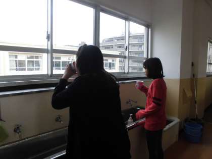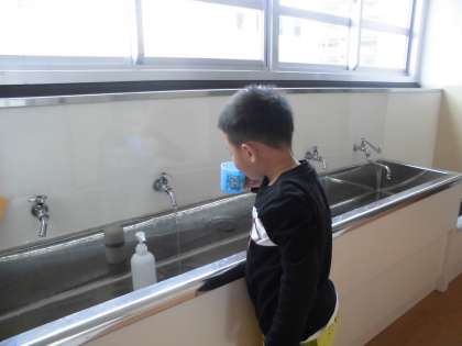 今年から給食後は必ず水でうがいをすることになりました。