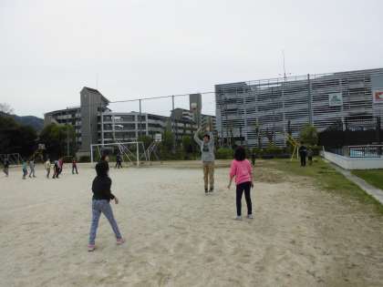 2時間目終了のチャイムと同時に元気よく教室から飛び出す子どもたち♪中間休みはドッジボール,バレーボール,サッカーなど,クラスのお友だちとで遊ぶ子どもたちの楽しそうな声がグランドに響きわたっています。さて,3時間目からもがんばりましょう。
