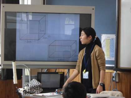 5年生では「体積」の学習が始まりました。どっちの立体が大きいか予想を立て,どうやって求めるのかをみんなで話し合いました。今まで学習した面積とは何が違うのでしょう?