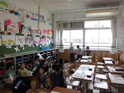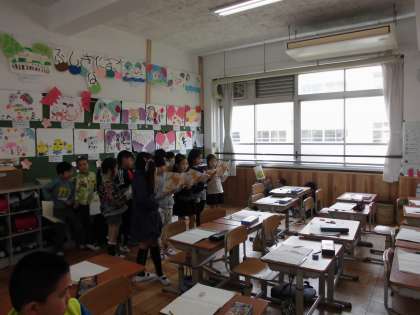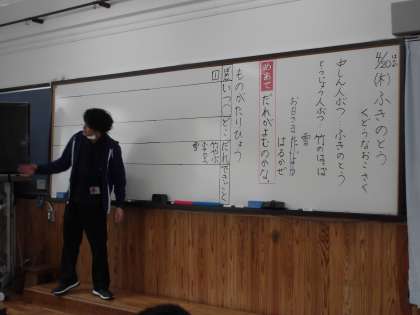 竹のはっぱ,雪,お日様,ふきのとう,はるかぜと登場人物で5つのグループに分けて,音読をしました。そのあとは,物語表の書き方について学習しました。