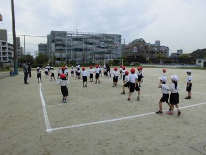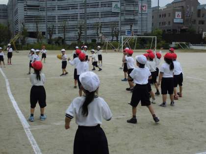 ボールからよけるのが上手です。友だちに「いけーー!」と応援する場面もありました。みんなで仲良く楽しみながら学習しました。