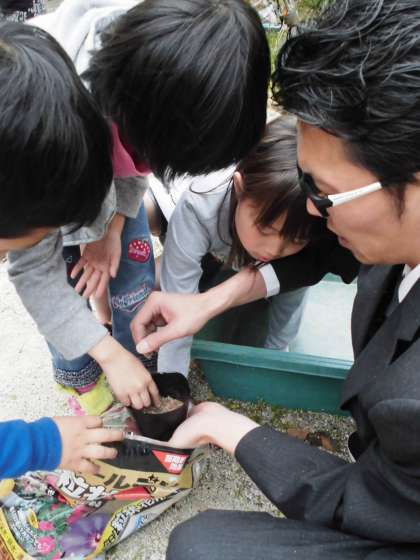 ひまわりの種を植えました。大きくなあれ!